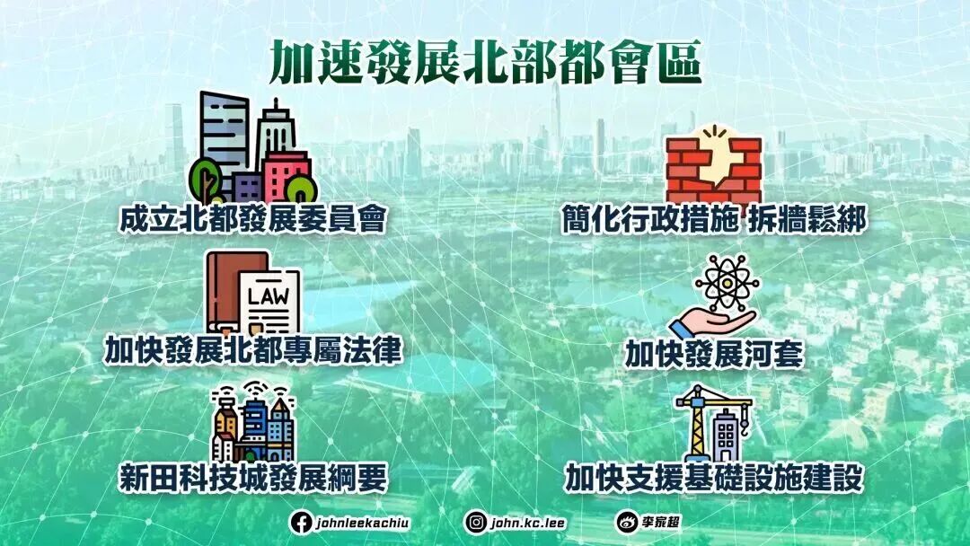 北部都会区将在未来数年进入收成期,洪水桥产业园投入运作,新的交通基建陆续落成。一个更具活力、更多元产业、更宜居宜业的香港,正在快速生长。