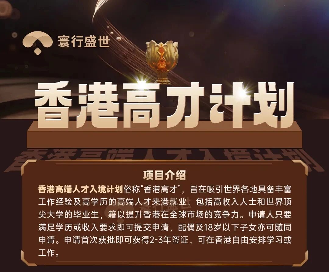 高才通计划旨在吸引全球范围内具备丰富工作经验或高学历的高端人才来港发展。该计划主要分为两类申请通道:
