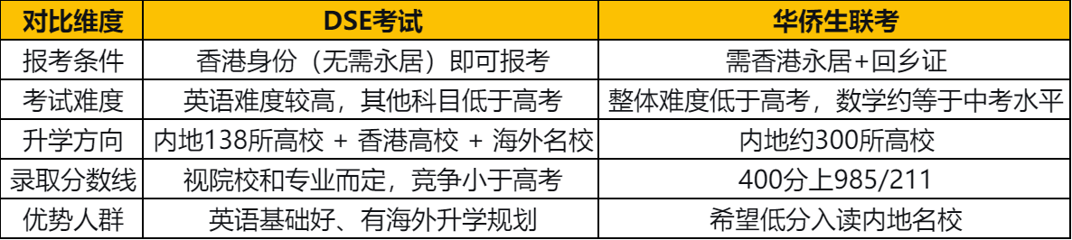 二、DSE vs 华侨生联考:一张表看懂怎么选