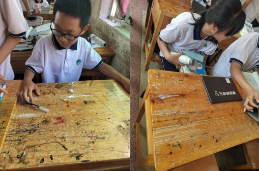 饶平城东中学,坐落在美丽的尖公山下,但这个学校设施经过常年的使用,出现了破旧破损,特别是孩子们使用的课桌椅,桌面腐蚀破损、抽屉破洞、桌脚断裂……这些不仅影响了孩子们的学习环境,也存在着安全隐患。
