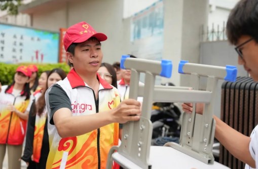当我们缓缓驶近饶平城东中学的大门,大门突然为我们敞开,那一刻,我心中涌起了难以言表的喜悦和成就感。在和小朋友们一起搬运桌子和凳子的过程中,他们兴奋地告诉我,他们非常开心能够拥有这些新的学习设备,并衷心感谢我们送给他们的礼物。虽然这些桌子和凳子的体积对于他们来说有些庞大,但他们仍然满怀喜悦地将它们搬回教室。整个公益活动中,我看到孩子们的脸上洋溢着灿烂的笑容,这让我坚信我们的公司做出了正确的选择。